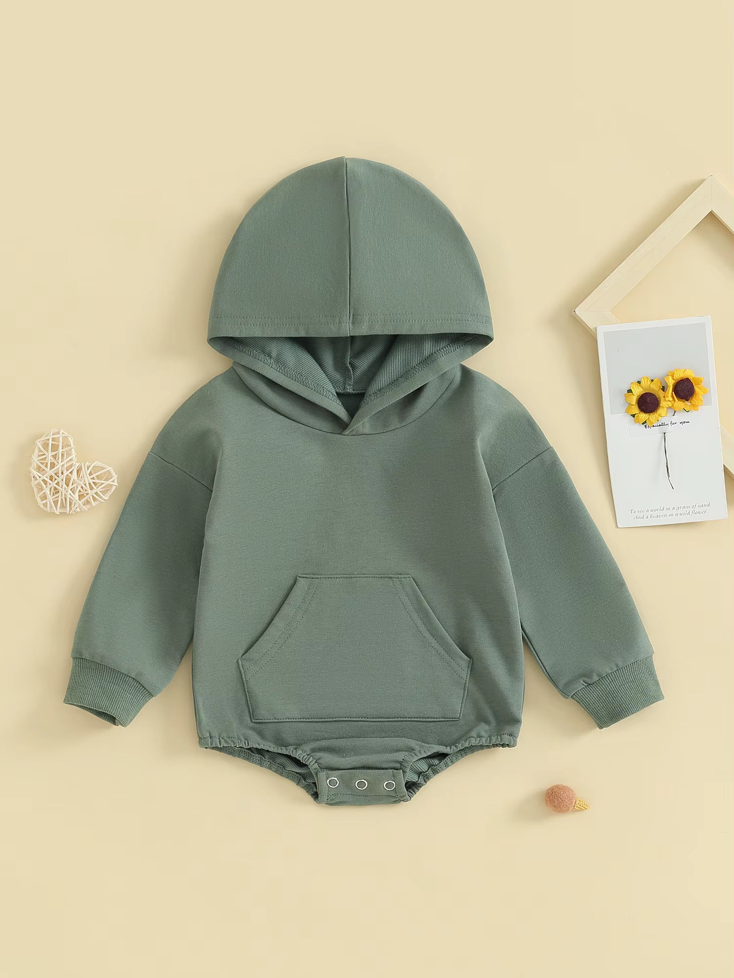 Från morgonmys till lekfulla eftermiddagar håller denna mjuka hoodiedräkt din bebis varm, bekväm och oemotståndligt söt. Perfekt för babyshowers, födelsedagar, familjefoton och alla stunder däremellan. 🎁